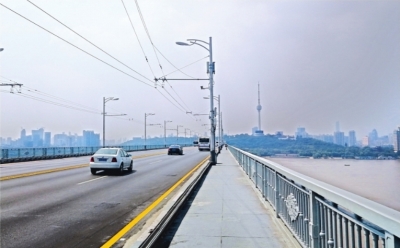 武汉长江大桥人行道与自行车道约两米宽