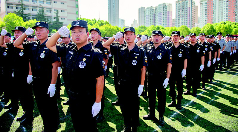 8月27日,武汉市保安行业“护军运”宣誓动员大会在武汉市体育运动学校举行,1000名保安员代表集结宣誓,为第七届世界军人运动会保驾护航,向世界展现武汉保安风采。武汉市现有134家保安服务公司和4.5万保安员。(湖北日报见习记者蔡俊 通讯员 陈龙 吴志群 摄)