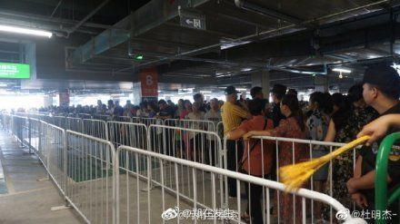 由于人员多方向分流,比起外边的排队场景,商场内部稍显好一些。