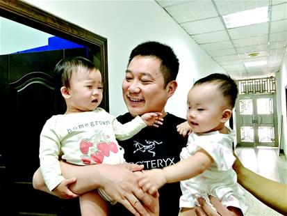 记者看到,两个孩子长得非常像,大宝稍胖还没学会走路,小宝稍瘦已能蹒跚学步。两个小家伙扶着椅子走到一起,对视了一会儿,欣喜地舞动小手咿咿呀呀叫个不停,还互相试着去摸对方的脸。一旁的民警盯着小家伙们,眼里都笑出了泪花。