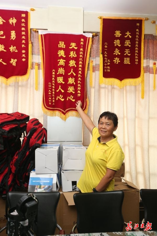 64岁的郑惠芳是江汉湾支队队长,也是长江救援志愿队建队之初便加入的“元老级”队员。在她的带领下,几乎一家人都成了长江救援志愿队队员。