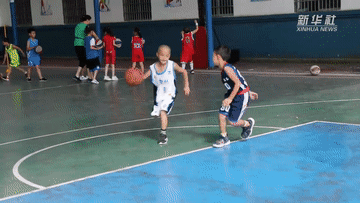 在贵州丹寨,“篮球少年”王阳在学校参加篮球训练。