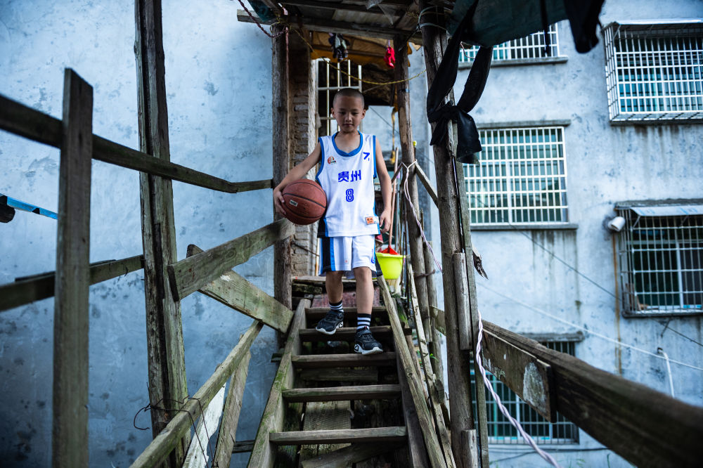 在贵州丹寨,“篮球少年”王阳从出租屋前往学校参加训练。