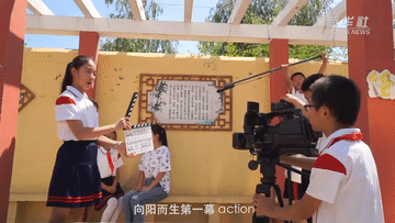 在河北省内丘县北岭中心小学,清脆的打板声打破了校园的静谧,由该校师生自行创作的微电影《向阳而生》正在加紧拍摄。