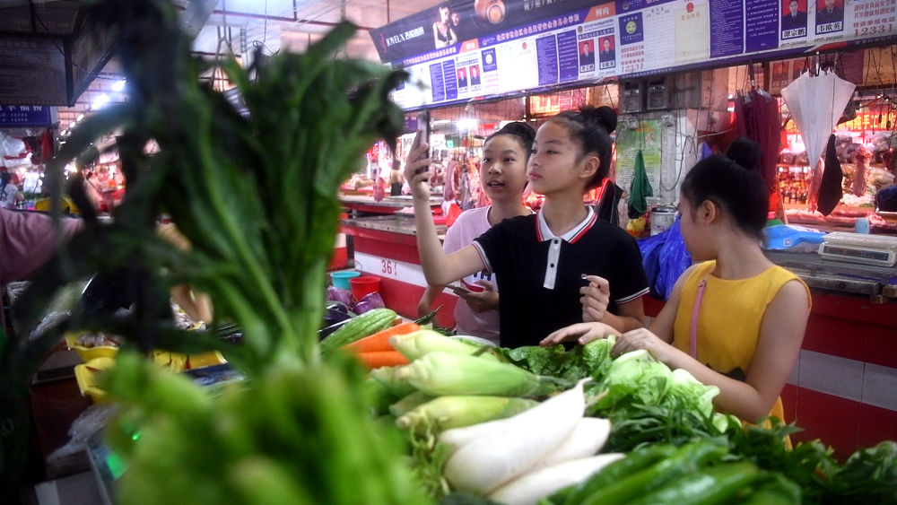 在广西钦州,芭蕾小天使们在市场上买菜,准备自己做饭。