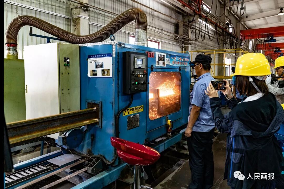 河口南焊轨基地,是中国西北最大的焊轨基地。基地目前拥有的2条长钢轨焊接生产线,年生产能力达到2000公里以上。这是焊接前的粗加工——粗打磨。