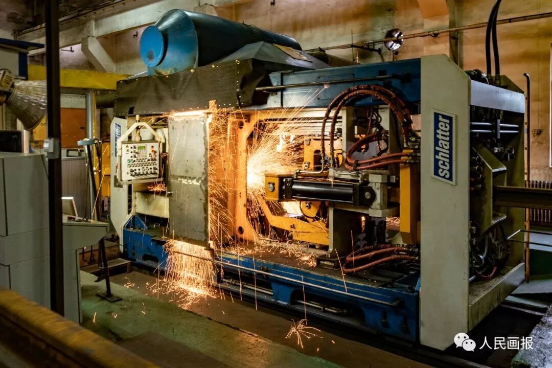 无缝钢轨是由5根100米长的钢轨,在焊轨基地焊接成一根500米长的钢轨,再运到铺设现场采用闪光焊的方式连接而成。钢轨放进焊机后,接头处被聚焦,最高温度可达1400摄氏度,在高温下迅速挤压,只需要两分钟,两根钢轨即可连接成一根。这是正在进行焊接。