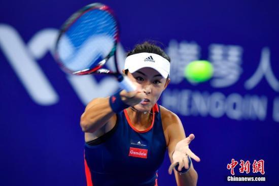 资料图:2018年珠海WTA精英赛首个比赛日。中国选手王蔷首秀苦战三盘,决胜盘破发战惜败,以1-6,6-2,5-7的比分不敌赛事头号种子、俄罗斯新星达利亚·卡萨金娜,无缘开门红。中新社记者 陈骥旻 摄