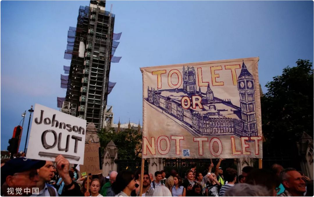 ▲8月28日,反对脱欧的民众在伦敦议会外及其他地区示威。
