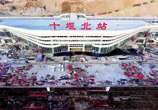 9月5日,施工中的汉十高铁十堰北站。目前,十堰北站站房已初露模样,车站广场也在加快建设中。据了解,汉十高铁全线14个车站建设都已进入最后冲刺阶段。(湖北日报全媒记者 田悦 通讯员张建波 摄)