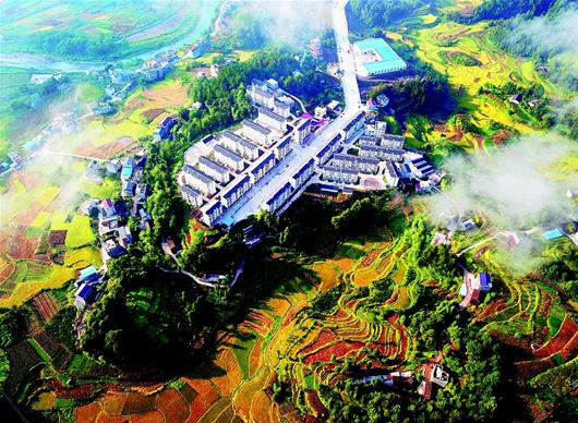 9月2日,秋意渐浓,宣恩县沙道沟镇上洞坪易地扶贫搬迁安置点如在画中。自易地扶贫搬迁以来,宣恩县3万多名贫困群众从大山深处搬进临近集镇、学校等地的易地扶贫搬迁安置点。 (视界网 王俊 摄)