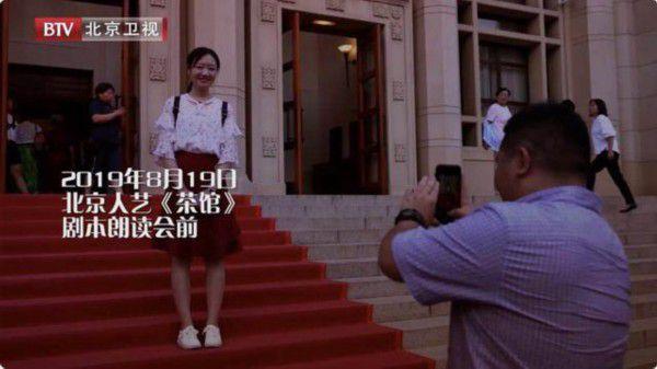 快闪活动《我和我的祖国》是借《茶馆》剧本朗读会契机展开。这是一场以人艺剧场为基点,以人艺广场为核心,选取首都剧院化妆间、北京人艺戏剧博物馆、北京人艺戏剧书店、首都剧场检票大厅等多个具备人艺标志性的地点作为活动场地的极致快闪活动。这样的创作模式成功打破了舞台与观众之间的空间界限,让艺术真正融入生活,凸显了艺术来源于人民生活的真实体验,歌颂了新时代人民的幸福生活。