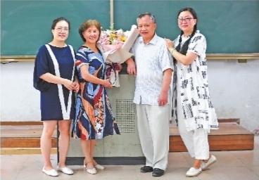 武汉市第十九中四代教师共庆教师节。王秀蓉(左一)肖水芸(左二)李东明(右二)孔晖(右一)