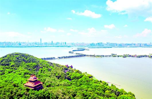 图为东湖风景区湖清岸绿