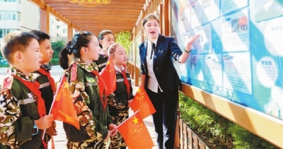 9月2日,内蒙古呼和浩特市玉泉区五塔寺东街小学“少年军校”开展“追忆革命历史 传承红色经典”为主题的爱国主义教育活动,让孩子们铭记历史,传承民族精神,迎接“中国人民抗日战争胜利纪念日”的到来。丁根厚摄/光明图片