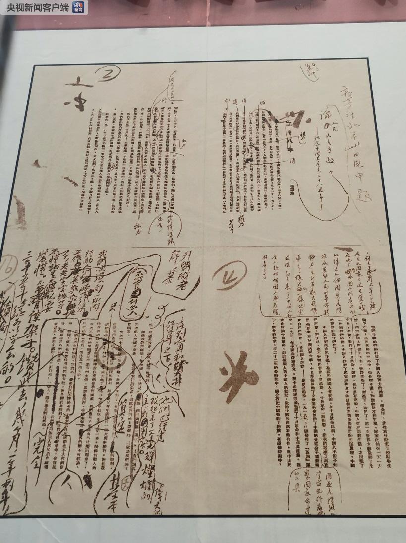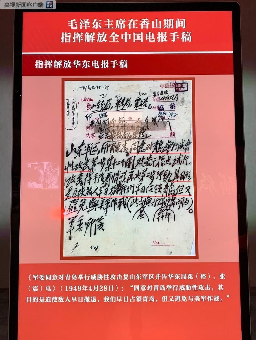 △展览上再现了毛主席指挥解放全中国的电报手稿。(央视记者段德文拍摄)