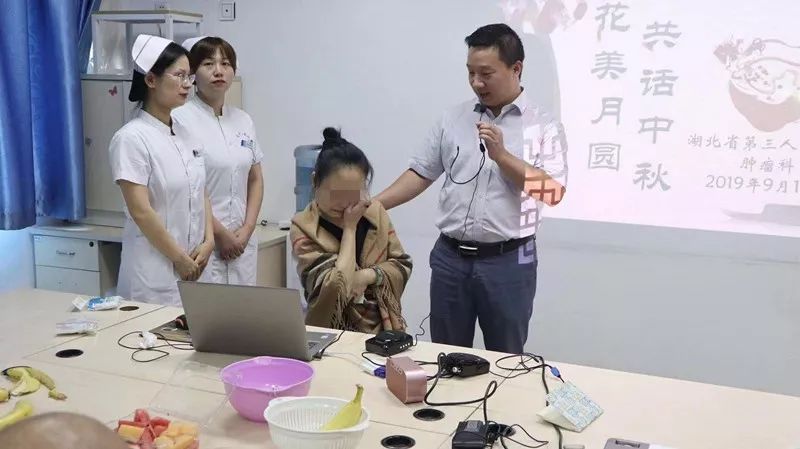视频中的女士姓童,今年50岁,身患胰腺癌多年。7年前在某大医院进行了胰腺、胆囊全切,胃切除三分之一,并置人造血管。由于病情危重,多家医院都不愿意继续收治。后来到湖北省中山医院肿瘤科,最终该科医生赵振宇成了她的管床医生。
