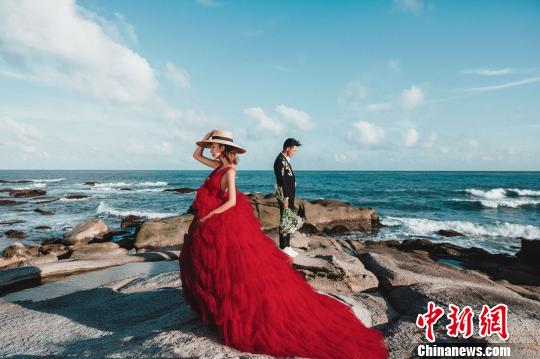 到中国三亚“婚旅”渐成时尚。