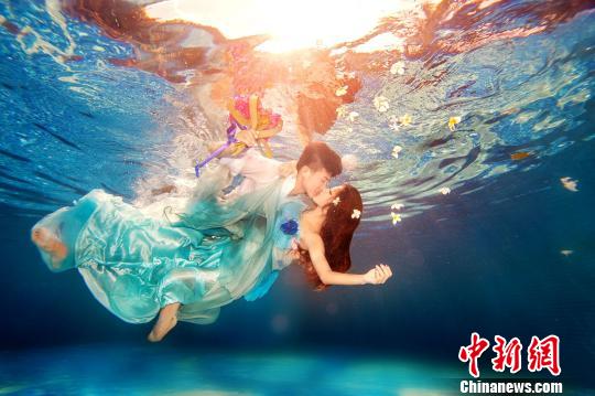 蜈支洲岛的水下婚纱摄影。景区供图