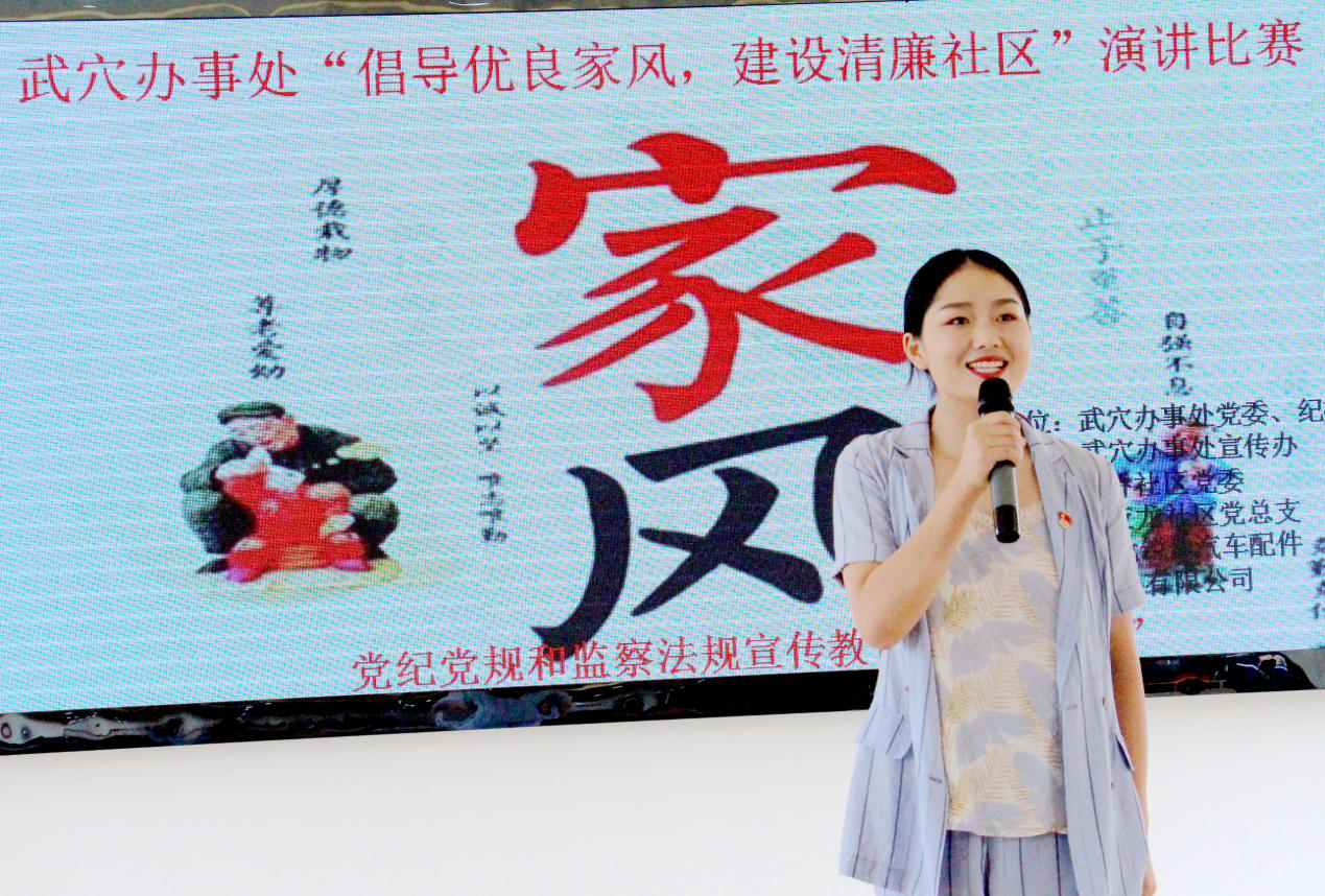 “一身正气上班去,两袖清风回家来,有了小家的清廉和谐,才有国家的风清气正。”武穴办事处下港社区纪检书记严晶晶在全处倡导优良家风、建设清廉社区演讲比赛中说道。