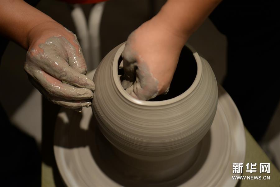 9月12日,在河北邯郸市峰峰矿区磁州窑盐店遗址博物馆制作工坊,刘立忠的大儿子刘鹏润在拉坯。 今年75岁的刘立忠是第一批国家级非物质文化遗产项目磁州窑烧制技艺代表性传承人,磁州窑盐店遗址博物馆馆长。出身于陶瓷世家的刘立忠是家族第四代传人。从艺以来,他一直致力于传统工艺的抢救与研究工作。经过他的整理与挖掘,传统磁州窑烧制的72道工序被完整地保存、延续下来,还有二十多项已经失传的装饰技艺也得到恢复。 磁州窑是我国北方的民窑体系,是古代民间窑场的杰出代表。为了更好地传承磁州窑文化与技艺,刘立忠先后收徒超过百人,向年轻人传授磁州窑烧制的传统工艺流程。“我的梦想就是让磁州窑窑火生生不息传承下去,发扬光大。” 刘立忠说。 新华社记者 王晓 摄