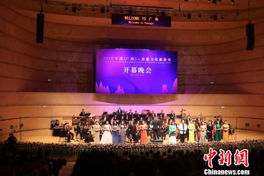 开幕晚会立足广西,放眼东盟,既有反映广西文化和旅游亮点与特色的歌曲,还特别选有10首东盟十国传唱度高的代表性民歌进行演出,多元文化齐聚一堂,共谱华彩乐章。期间,广西交响乐团倾情演绎《广西尼的呀》《侗寨狂欢夜》《心仪广西》《山歌好比春江水》等展示广西山水特色和独特人文风情的歌曲,也通过《旅游天下》《美好新时代》等曲目展示中国的秀美山川、中华民族强大的凝聚力和对美好生活的新期待。《每天开心》《欢聚一堂》《河内的秋天》等10首东盟民歌联唱,展示东盟各国的多彩文化魅力。