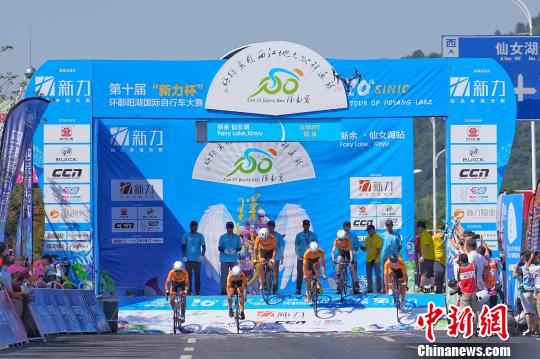 中新网新余9月20日电 (吴鹏泉)9月20日,2019第十届环鄱阳湖国际自行车大赛(简称“环鄱赛”)第四赛段来到江西省新余市仙女湖,进行团队计时赛。经过角逐,最终德国助力车队夺得团体冠军。