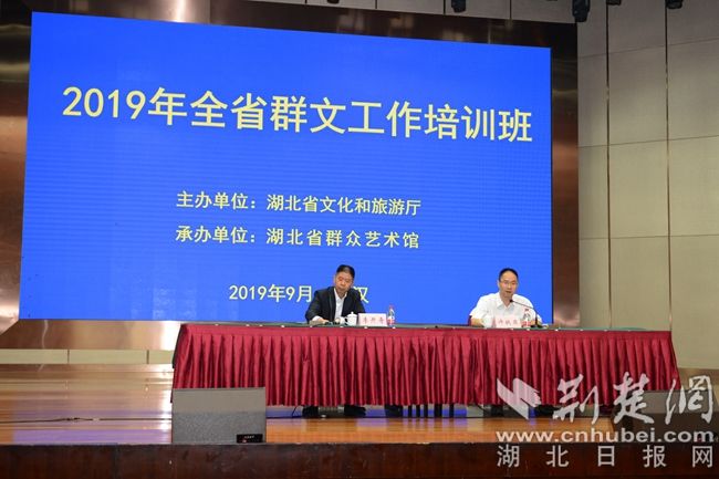 荆楚网客户端—荆楚网消息(记者刘菲 郝菁 通讯员杜旭东)9月20日,湖北全省群文工作培训班在钟祥市开班,这是各地文旅机构改革基本完成以后,第一次举办的全省群文工作培训班,也是首届荆楚乡村文化旅游节的活动内容之一。全省文化和旅游局相关负责人及各级文化馆、省群众艺术馆业务骨干共288人参加培训。