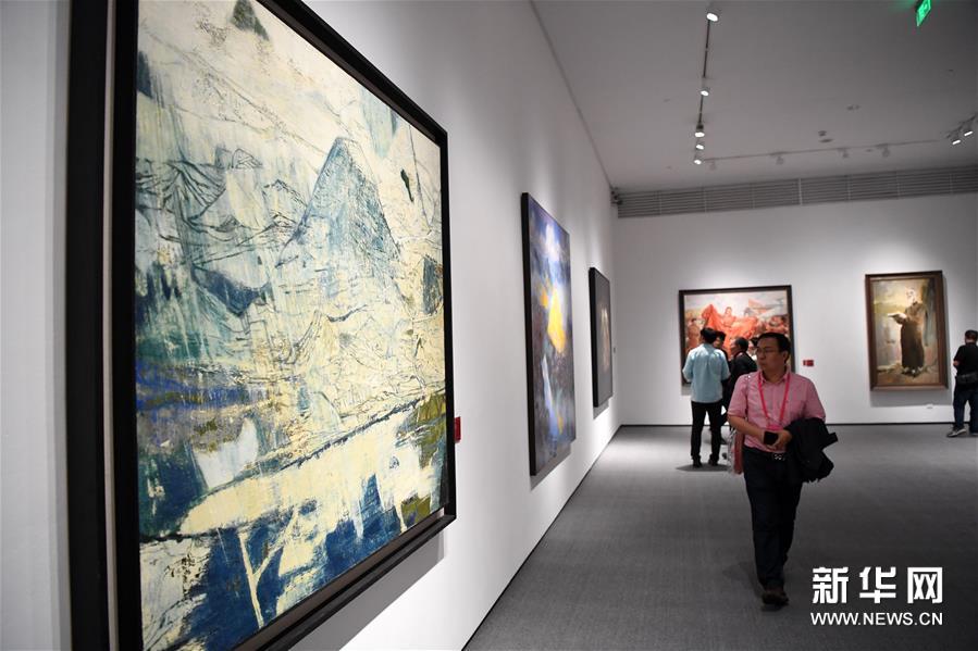 9月22日,观众在美术馆内参观。 当日,第十三届全国美术作品展览油画作品展在位于重庆大学城的四川美术学院美术馆开幕。 新华社记者 唐奕 摄
