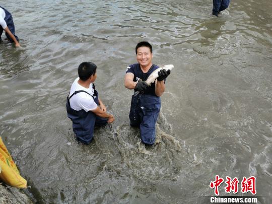 22日,2019罗源?中房健身休闲旅游丰收节暨古镇探宝活动在罗源县中房镇举行。图为趣味水中摸鱼比赛现场。 俞洪标 摄