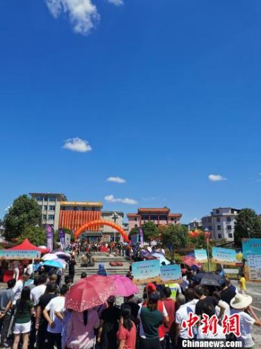 22日,2019罗源·中房健身休闲旅游丰收节暨古镇探宝活动在罗源县中房镇举行。图为活动开幕式现场。 俞洪标 摄