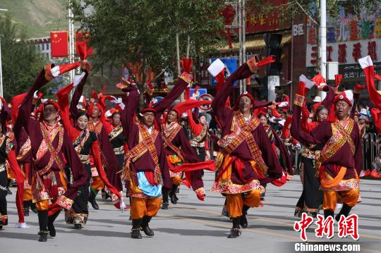 资料图为青海玉树康巴伊舞。 罗云鹏 摄