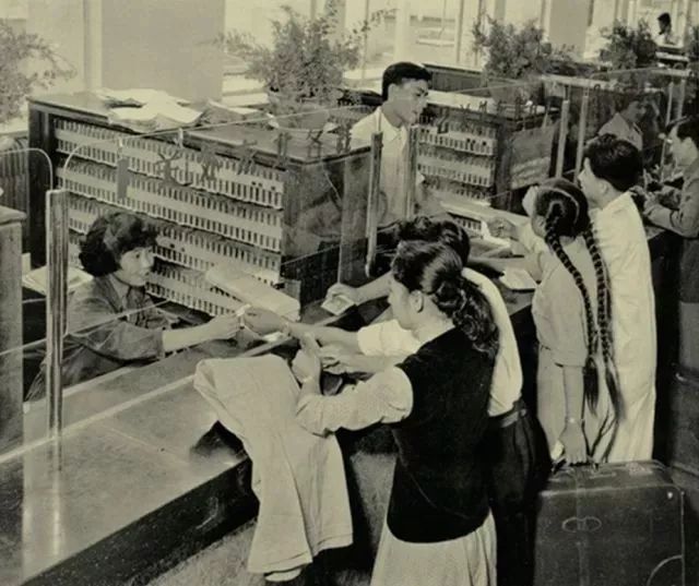 1959年9月14日晚,毛泽东主席视察北京站,在售票大厅通过玻璃窗口接过售票员递出的一张火车票。