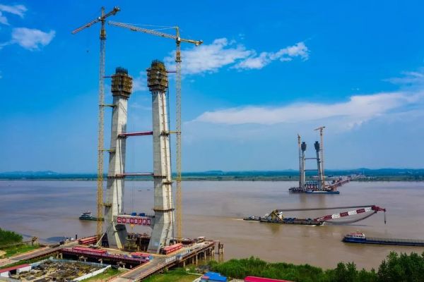 赤壁长江大桥连接赤壁市与洪湖市,主桥是双塔双索面斜拉结构,主塔为H形。预计2020年2月能按期实现主塔封顶等施工目标。