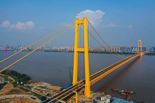 在世界同类桥梁中,以主跨926米位居第二,被誉为”湖北第一桥”。