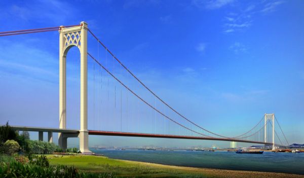 据悉,这是目前长江上最宽的桥,桥面48米,设计双向10车道。