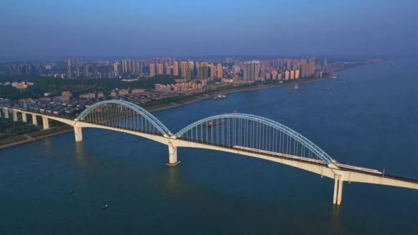 九江长江大桥位于长江中游的江西、湖北、安徽三省交界处,大桥南接江西省九江市,北通湖北省黄冈市黄梅县,是京九铁路和国道G105的重要过江通道。该桥是我国桥梁建设史上第三座“里程碑”式的桥梁,铁路桥全长7676米。