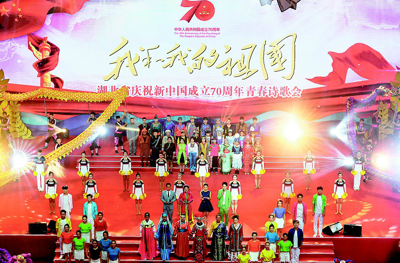 图为:9月23日晚,“我和我的祖国”——湖北省庆祝新中国成立70周年青春诗歌会,在华中师范大学激情上演。(湖北日报全媒记者 田悦 通讯员 姚雪 摄)