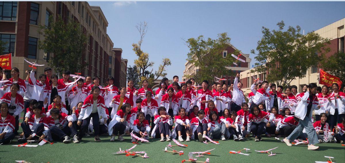 在启动仪式上,高密一中、高密二中、高密至诚学校被联合体授予“全国航空特色学校”,同时,联合体向以上3所学校捐赠了航模、船模、科普书刊等。启动仪式后,创新融合学会联合体专家为高密一中、高密二中、至诚学校带来了精彩的科普报告与航模表演。4000多名师生集体观看了专业航模队的精彩表演。航模队员操控一架架航模迎风展翅翱翔,直冲云霄,为师生们表演了各种高难度的特技表演,一次次将活动推向高潮,引得师生们的阵阵掌声和欢呼声。翱翔的航模与飘扬的彩旗相得益彰,描绘出一幅科技强国、航天筑梦的绚丽画卷。