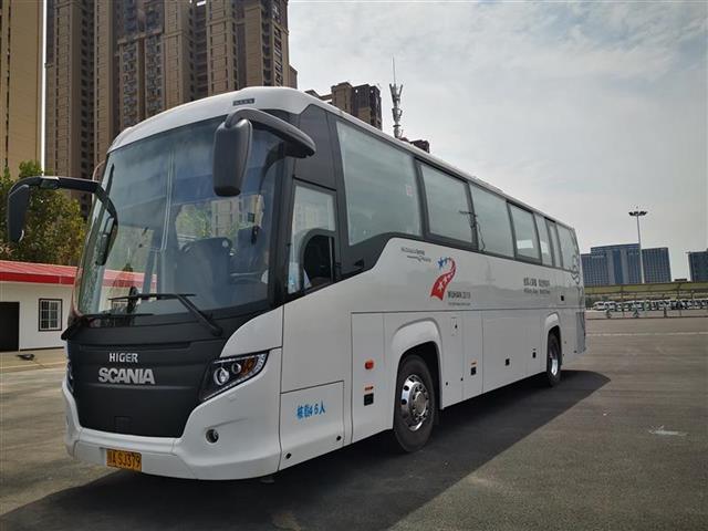 这辆保障大巴车,外形整体以白色为主,上面贴有“创军人荣耀 筑世界和平”的武汉军运会口号以及会徽。钱浪向记者介绍:“赛时,针对保障人群的不同,大中型保障车辆会分成蓝绿红三种颜色。所有保障车辆都是三年驾临以内的“新车”。并且小车必须装有GPS定位,大车则要求安有监控视频系统、满足4G联网功能;才能进行统一调度。同时要求所有车辆每天进行一次日常保养和保洁。”