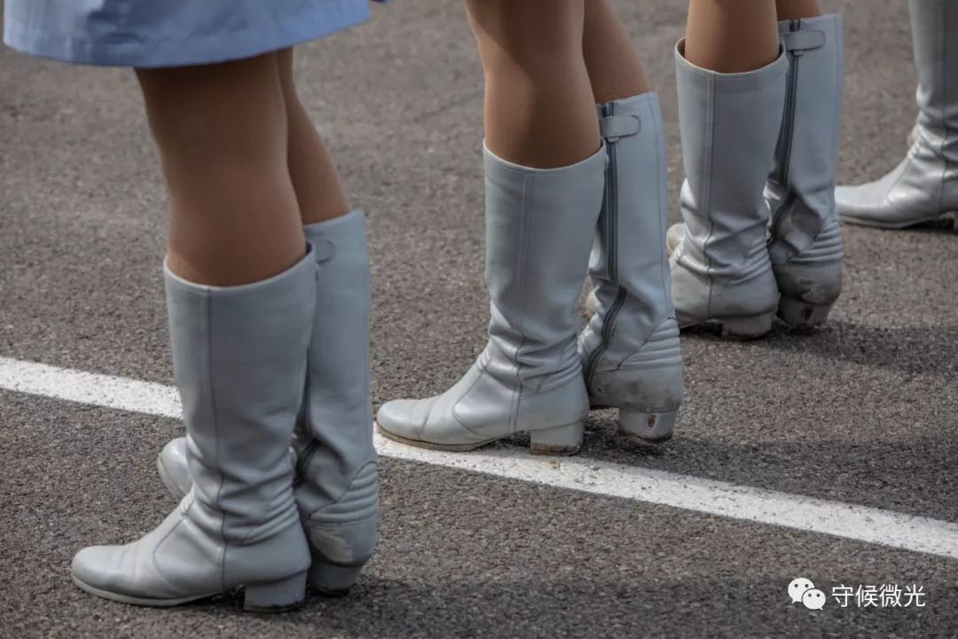 在走起正步时,女民兵们也是目光坚毅,步伐铿锵有力。