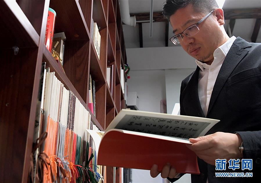 陈楠在位于清华大学的工作室内翻阅资料(9月24日摄)。 新华社记者 李安 摄