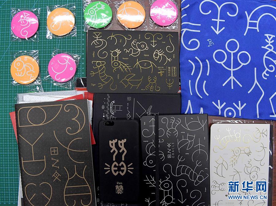 这是在位于清华大学的工作室内展示的陈楠设计制作的甲骨文文创产品(9月24日摄)。 新华社记者 李安 摄