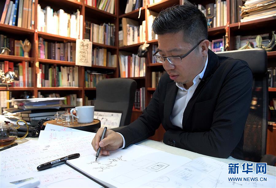 陈楠在位于清华大学的工作室内绘制设计手稿(9月24日摄)。 新华社记者 李安 摄