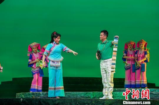这是现代彩调剧《新刘三姐》讲述的感人故事。9月26日晚,这部由广西党委宣传部、广西文化和旅游厅组织策划、广西戏剧院创作排演剧目在广西南宁首演。该剧被列为2019年全国现实主题舞台艺术重点项目,也是广西党委宣传部当代文学艺术创作工程重点扶持项目和广西庆祝新中国成立70周年系列活动之一。