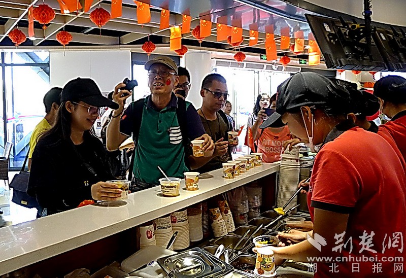 在这里,你能看到“德克士”这样深受青少年喜爱的国内知名西餐连锁品牌,也能看到“一品豆花” “刘记锅盔”“重庆小面”“阿东生煎”这样的风味小吃,还能见到“潜江龙虾”“毛嘴卤鸡”“良品铺子”等颇具地方特色的名优产品。