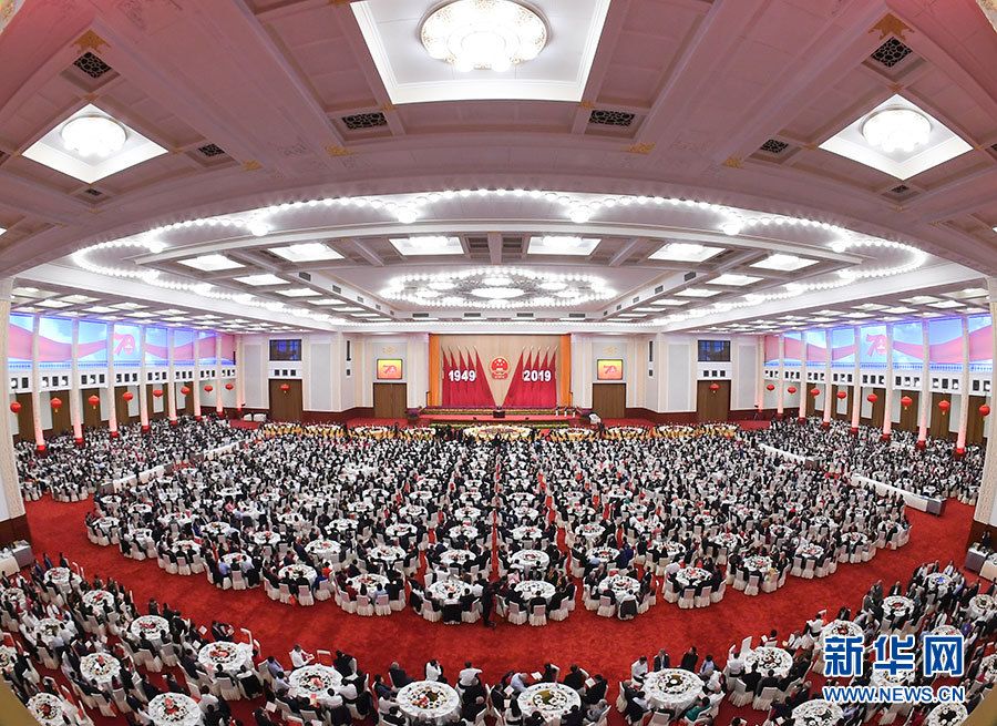 9月30日晚,庆祝中华人民共和国成立70周年招待会在北京人民大会堂隆重举行。 新华社记者 张领 摄