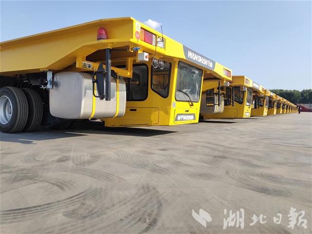 研制生产这些“能让观礼台行走自如”设备的,正是万山公司。从5200吨到12000吨,万山公司多次打破国内大件物流载重吨位之最、并联使用车辆数量之最,并研发出国产首台单体最大载重量1000吨平板车。