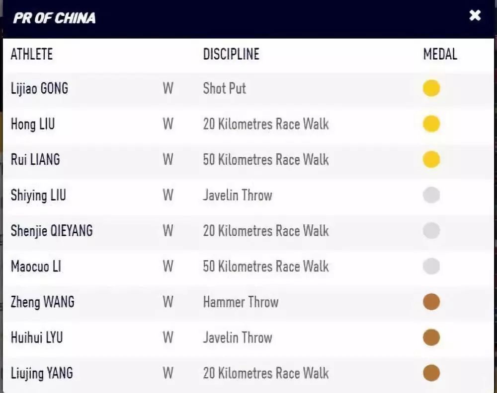 完成卫冕大业的巩立姣,成为了中国田径史上第三位拥有两枚或以上田径世锦赛金牌的运动员,同时,她更是前辈黄志红之后,第二个实现世锦赛两连冠的中国运动员。