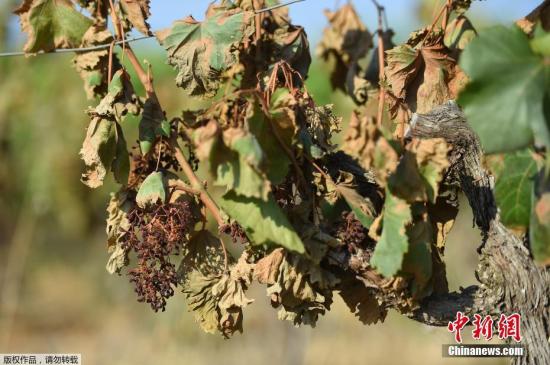 资料图:当地时间2019年6月30日,法国南部蒙彼利埃附近的Sussargues,高温下烤焦的葡萄藤。法国持续高温干旱天气引发火灾,当地葡萄种植者损失惨重。